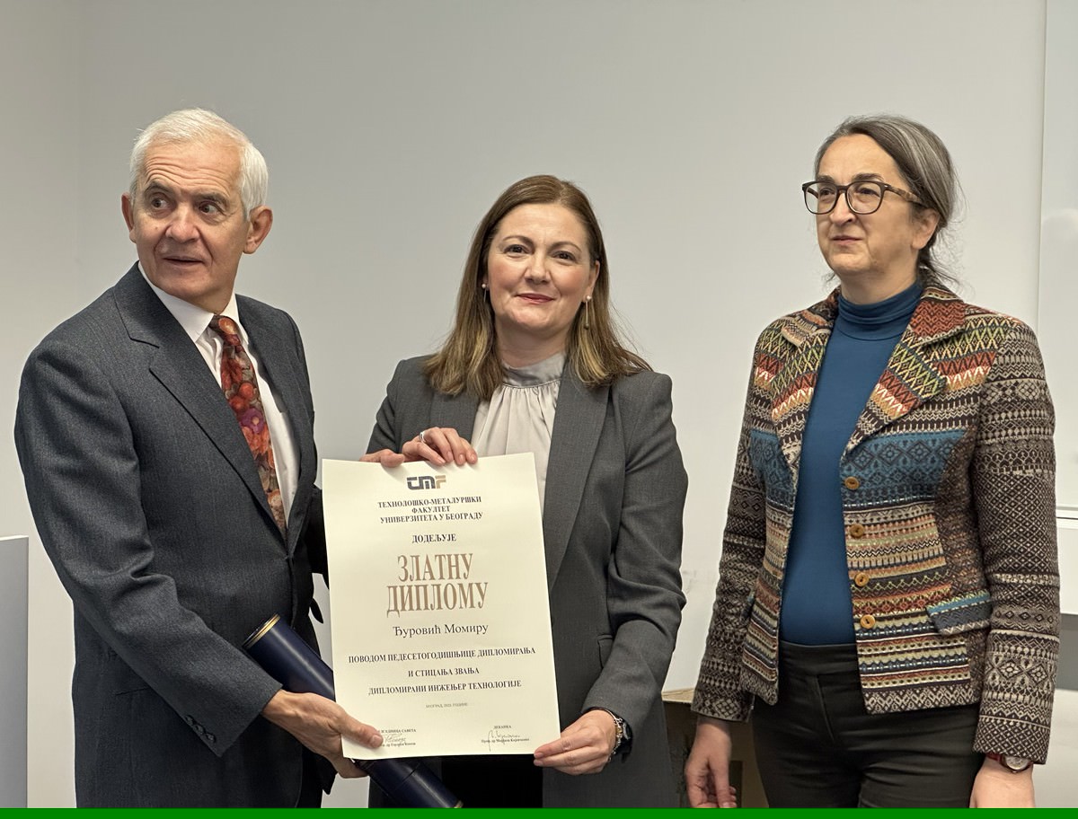 Opšte vestiU okviru proslave Dana fakulteta, 27. novembra 2025. godine na prigodnoj svečanosti u Svečanoj sali Fakulteta uručene su Zlatne diplome inženjerima tehnologije i metalurgije koji su diplomirali na Tehnološko-metalurškom fakultetu Univerziteta u Beogradu 1975. godine.